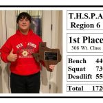 At 308, Peyton Klein placed sixth overall and squatted 730 to break his school record, and he also benched 440 to break his own school record, and dead-lifted 550 for a personal record 1,720 total weight.