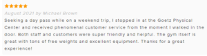 “You gym was great and I will be sure to recommend it to anyone who is looking for a gym in the area.”