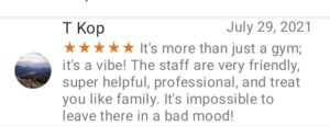 “Great workout environment and everyone is very nice! I would for sure recommend this place!!”