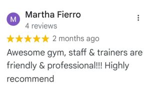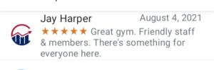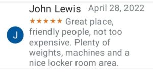 “This is a great place! I recently joined and all the people and staff are so friendly- can’t say enough about this gym. Very reasonable fees also!”