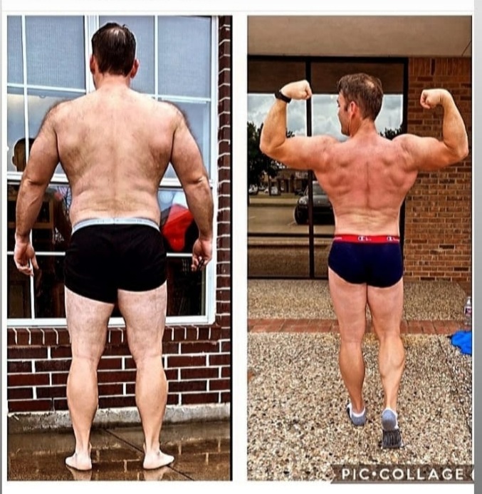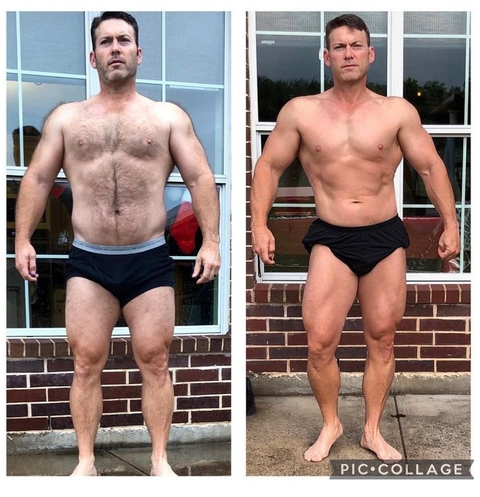 “Down 80lbs. I go hard, thank you so much friends and family for pushing me and helping me get to where I am now! And thank you again Radonna & Mark Goetz! Love it here!”
